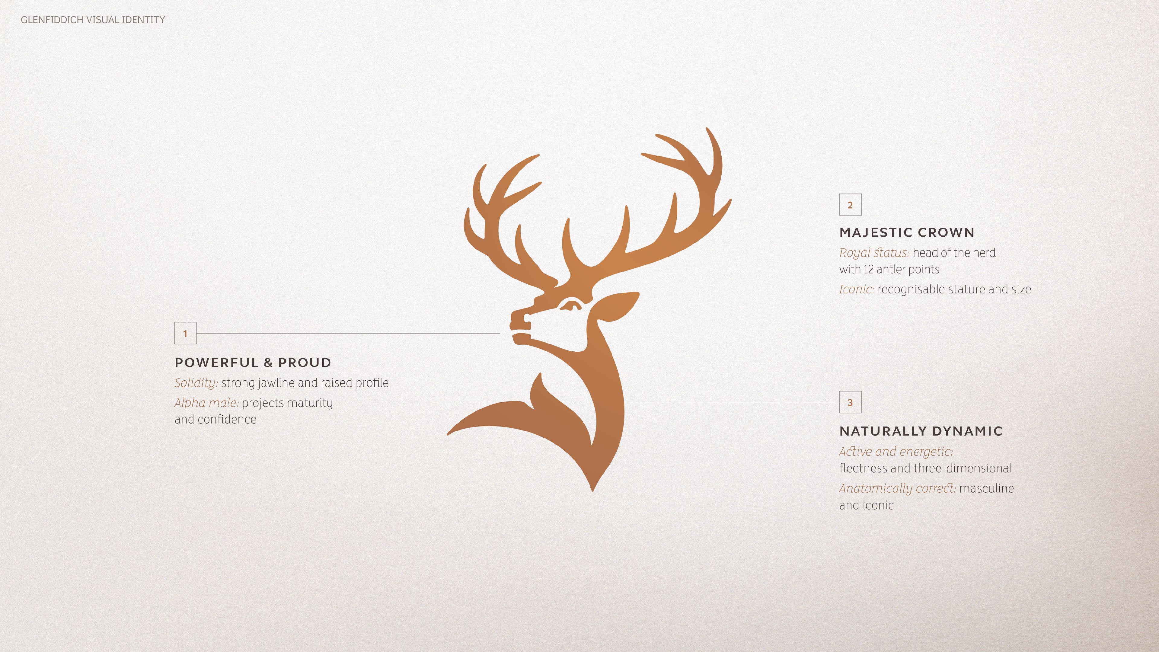 Creatively, we decided to bring the icon back to The Monarch of the Glen, the Edwin Landseer painting, that was the original inspiration. So, we lifted the stag’s head. Added dynamism. Reinstated his 12 antler tines. Gave him back his confidence and stature. Turned him alpha.