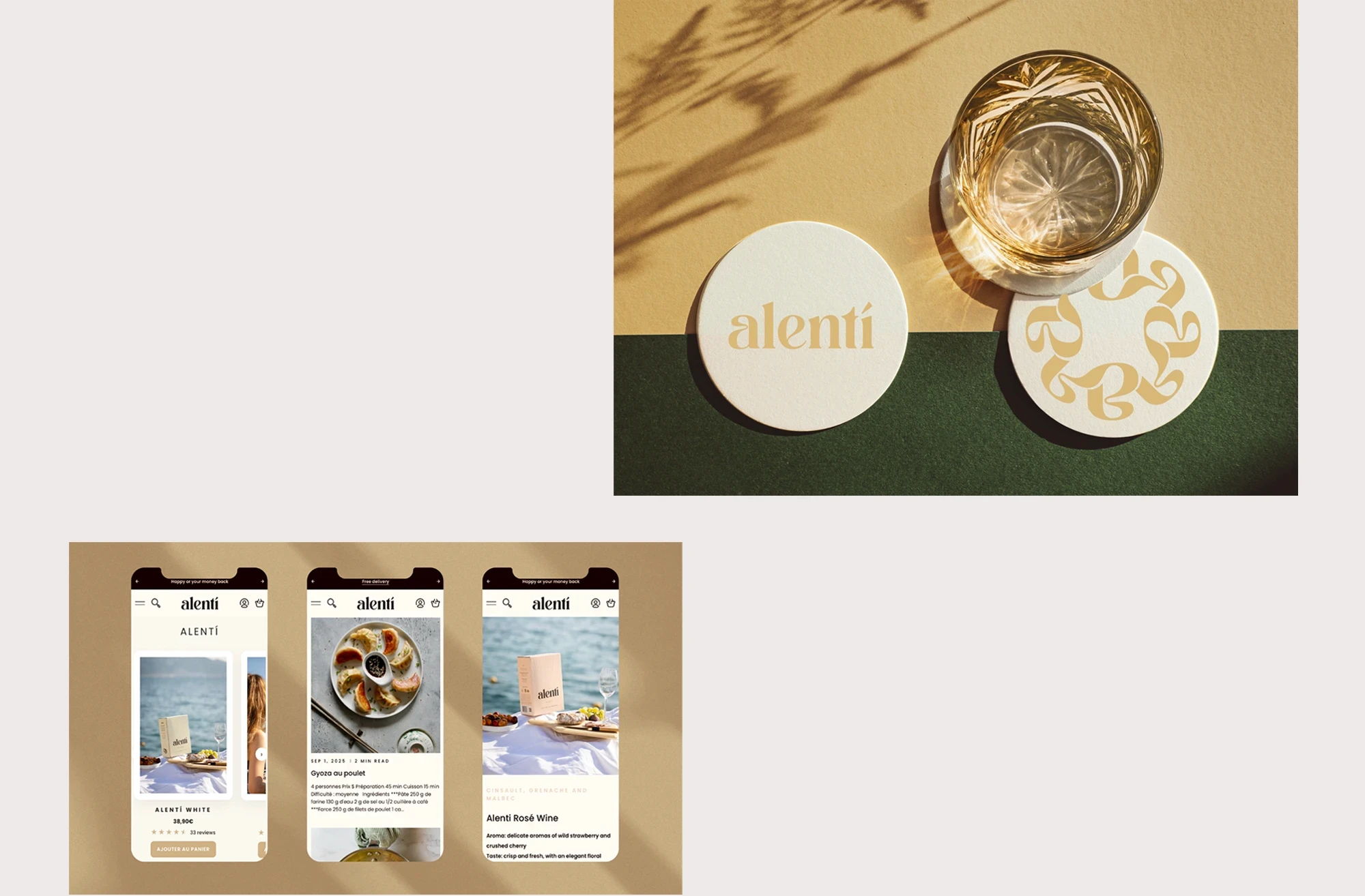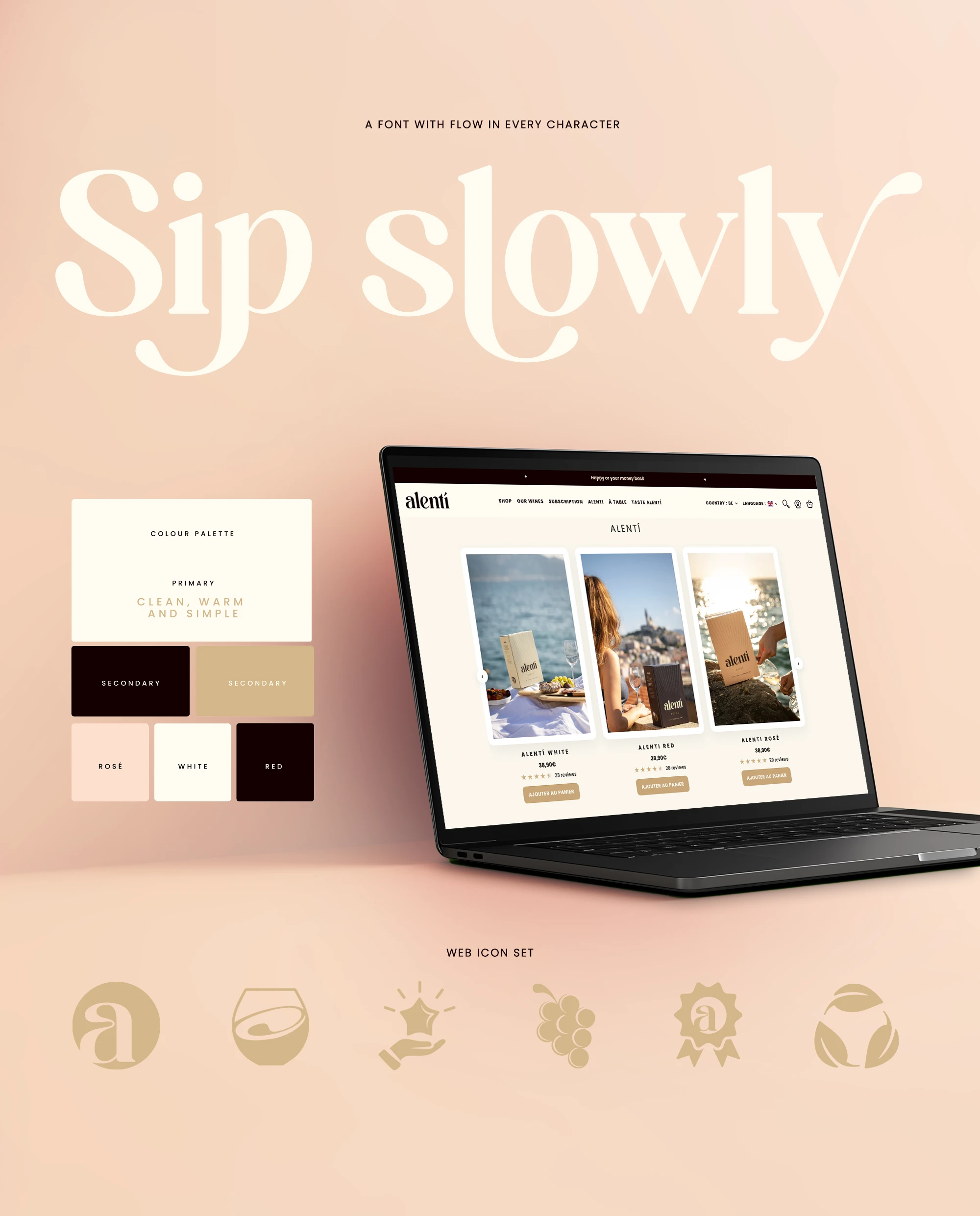 The name Alentí is a poetic misspelling of the French verb ‘ralentir’, meaning to slow down, with the acute accent on the final letter adding a touch of European elegance. Sophisticated yet approachable, it’s simple to pronounce and subtly captures the brand’s slow-living proposition.